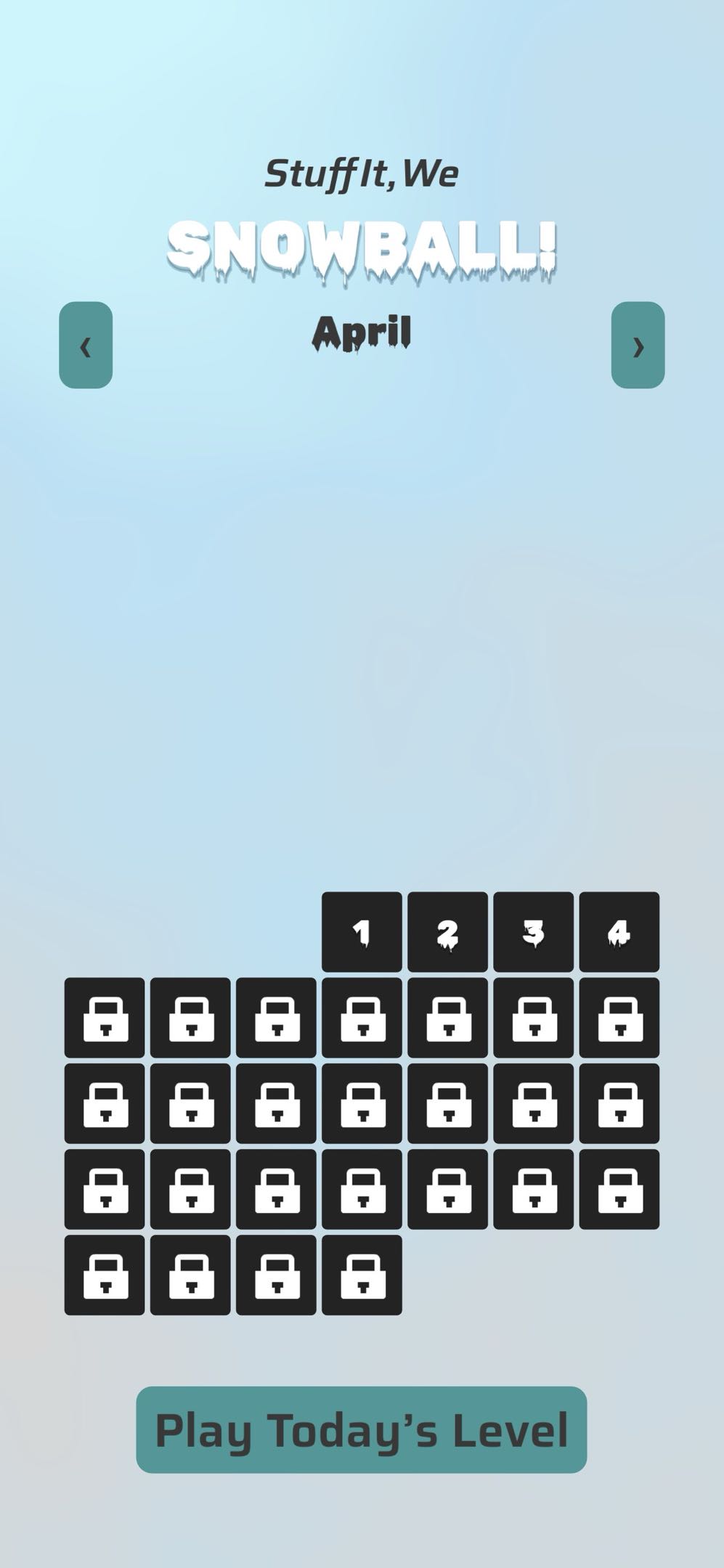 In Stuff It, We Snowball, you race down a treacherous mountain, and picking up snow along the way. Each day features a new procedurally generated mountain to race down. Get enough stars to complete each day to bronze, silver, or gold.